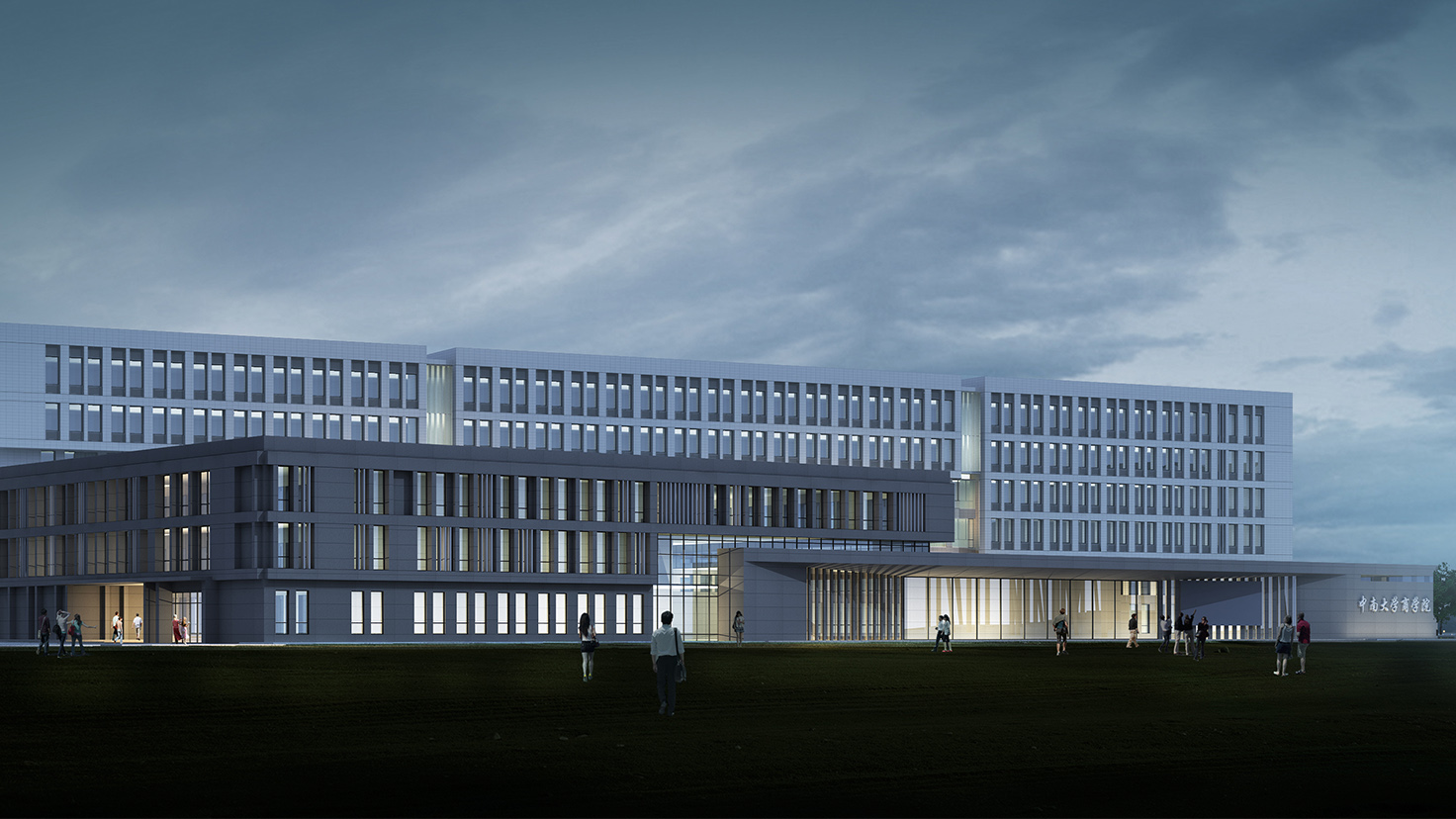 設(shè)計(jì)背景:中南大學(xué)作為以工科為主的院校,新校區(qū)的建筑大多側(cè)重于厚重,敦實(shí),外觀簡潔實(shí)用;而商學(xué)是注重實(shí)戰(zhàn)的學(xué)科,注重交流,與人溝通,是站在時(shí)代前沿的行業(yè)。作為校區(qū)東大門的第一棟教學(xué)科研建筑,我們希望商學(xué)樓的外形是大氣的、凝重的、敦實(shí)的,能充分體現(xiàn)商學(xué)院沉穩(wěn)的、具有人文氣息的特質(zhì),成為新校區(qū)建筑形態(tài)的經(jīng)典之筆。